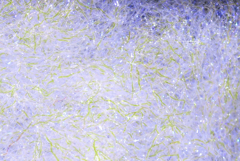 Hareline Ice Dubbing is arguably the most popular dubbing in fly tying. It dubs easily and the added flash will entice more strikes. The UV options give the sheen a purple hue and lights up your fly.