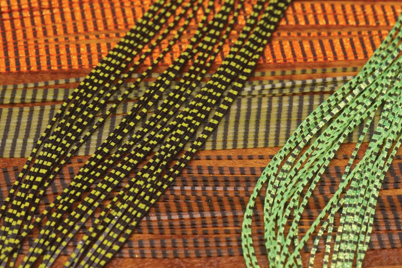 Hareline Grizzly Flutter Legs are as buggy as it gets. They are barred on both sides and are available in a wide color range.