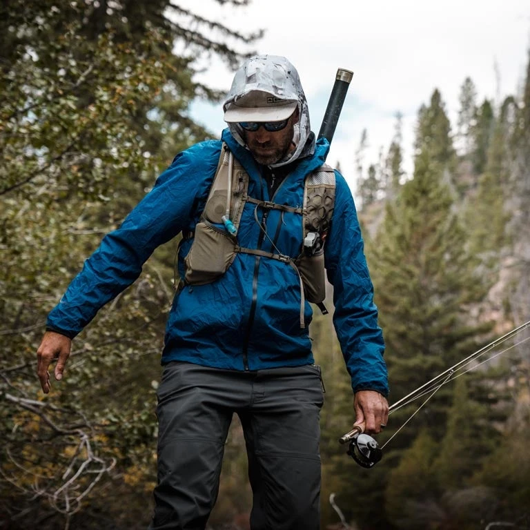 The Simms Flyweight Shell Jacket, a lightweight, packable summer storm solution.